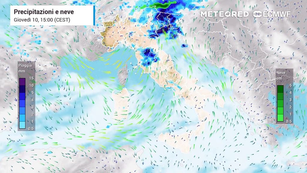 Piogge e temporali, localmente forti, anche tra Liguria di levante e Toscana e qualche fenomeno sparso più modesto non è escluso su Sardegna e regioni meridionali del versante tirrenico e ionico.