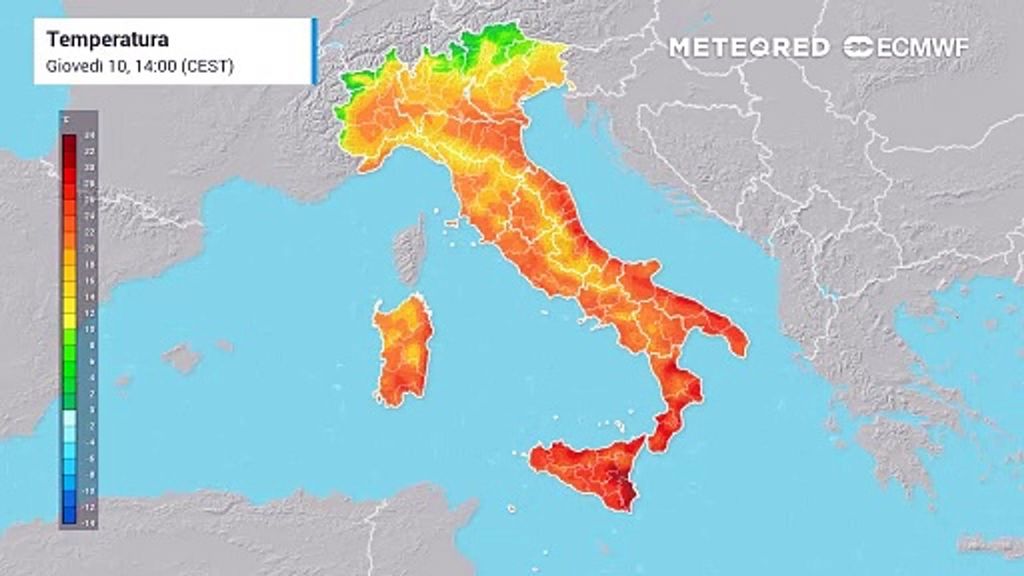 Altrove cielo poco nuvoloso o irregolarmente nuvoloso. Le temperature saranno ovunque superiori alle medie del periodo ma particolarmente elevate dove prevarrà il sole: in Sicilia possibili valori massimi superiori ai 30 gradi ma caldo anche lungo tutto il versante adriatico tra la Romagna e la Puglia con massime comprese tra 26 e 30 gradi.