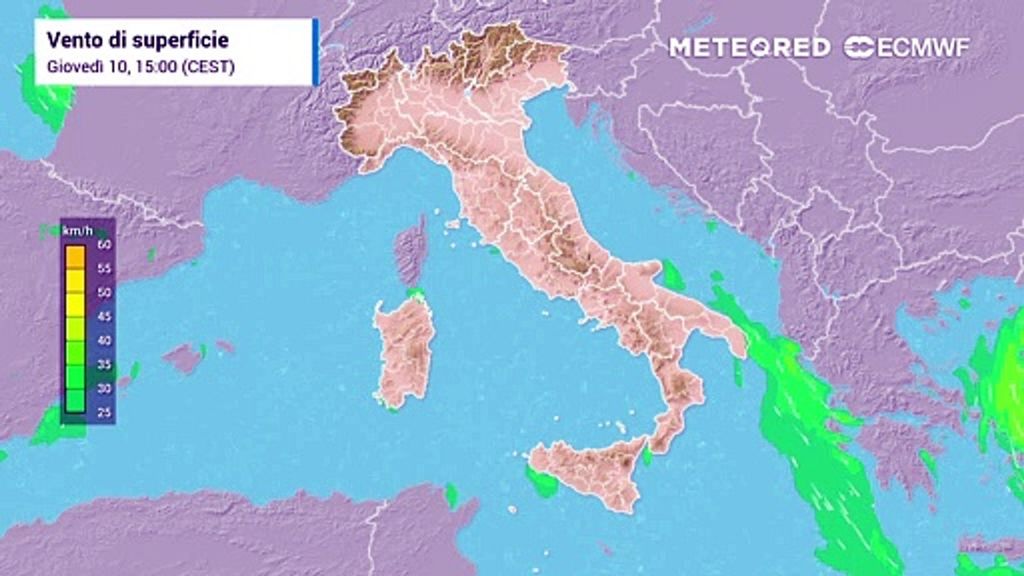 Temperature sui 34-35°C nelle massime al centro nord, minime ancora sotto alla soglia di notte tropicale, sui 17-18°C, localmente però nelle città arriveranno a 20-22°C.