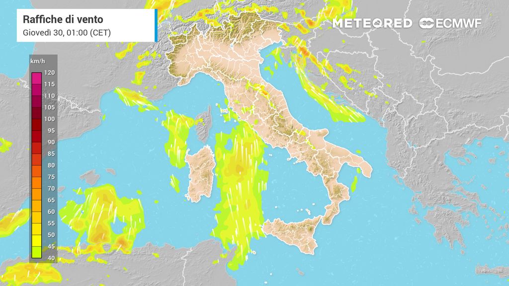 Un forte flusso di venti nord-occidentali in quota sta portando un aumento della ventilazione sull’Italia, con raffiche di burrasca soprattutto al Nord-Ovest, sulle zone alpine e lungo le regioni tirreniche. Sulla base delle previsioni disponibili, il Dipartimento della Protezione Civile d’intesa con le regioni coinvolte – alle quali spetta l’attivazione dei sistemi di protezione civile nei territori interessati – ha emesso un avviso di condizioni meteorologiche avverse.