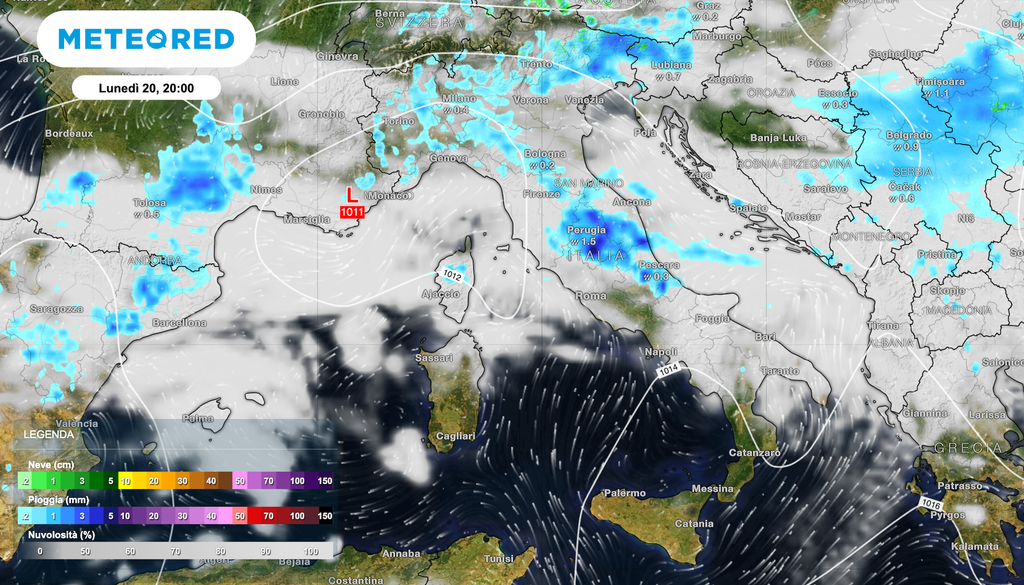 Italia colpita: il cambiamento nella circolazione atmosferica a partire da lunedì 20 secondo i modelli IA