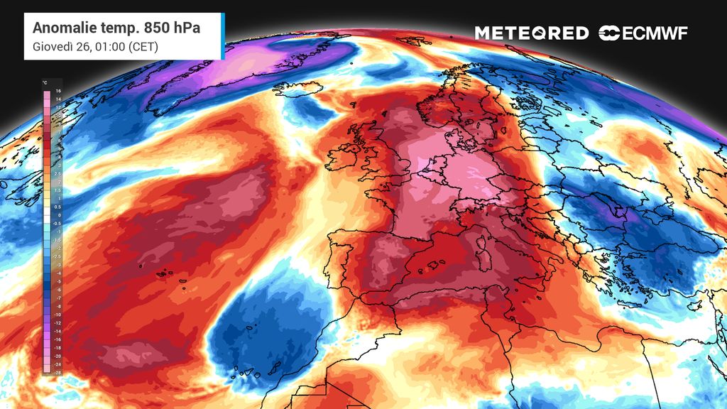 Questo porterebbe anche a una redistribuzione termica, riportando le temperature verso le medie stagionali, interrompendo l'anomalia calda attuale e riportando anche la neve sui rilievi a quote più consone al periodo.
