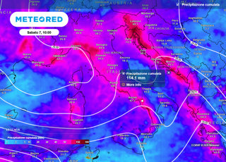 In queste aree gli accumuli totali potrebbero superare i 100-150 mm, con punte locali che in alcune zone potrebbero raggiungere anche i 200 mm nel corso dell'intera settimana.