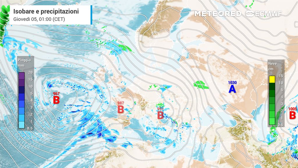 L'Italia si conferma, subito dopo la Spagna e il Portogallo, l'area geografica dove si concentrano le precipitazioni più rilevanti del continente europeo in questo periodo dell'inverno 2026.