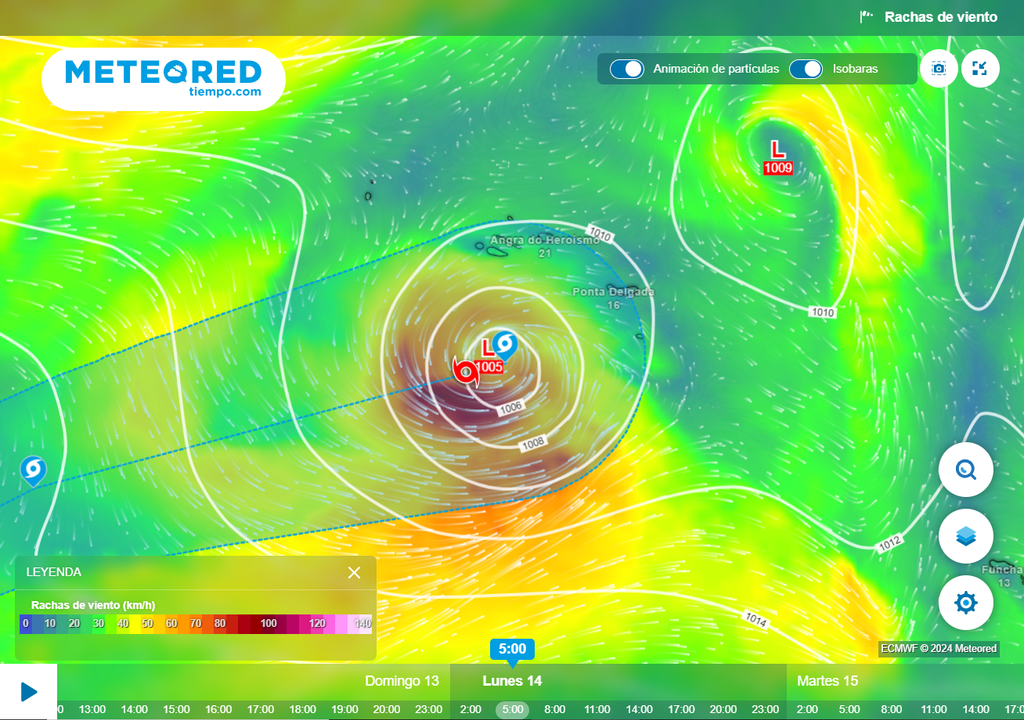 Naturalmente, se questo scenario continuasse, i suoi resti arriverebbero a priori come una bassa pressione post- o extratropicale, ma lascerebbero comunque piogge localmente intense e molte onde su alcune isole, con venti sostenuti intorno ai 65 km/h al centro.