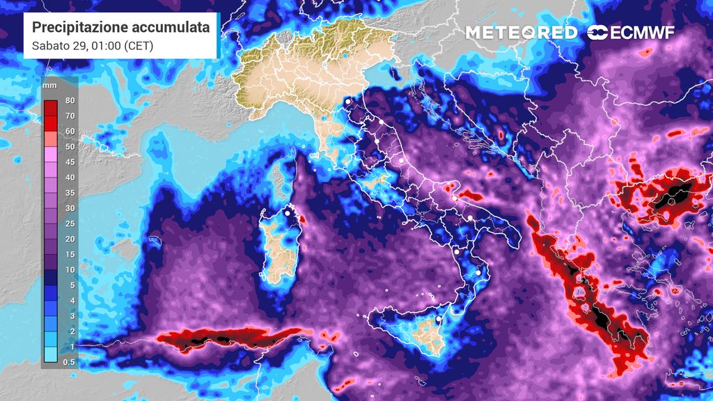 Le accumulate, anche con l’arrivo di questo ennesimo fronte freddo, si potranno attestare oltre i 50 mm, e saranno ben poche le località che riusciranno a rimanere asciutte.