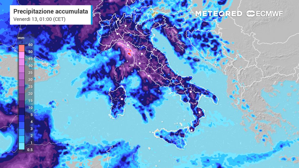 Il peggioramento più marcato sulla regione arriverà nella notte tra mercoledì 11 e giovedì 12, quando un'area di bassa pressione sul Mar Ligure convoglierà sulla Liguria e sull'alta Toscana le precipitazioni più intense.