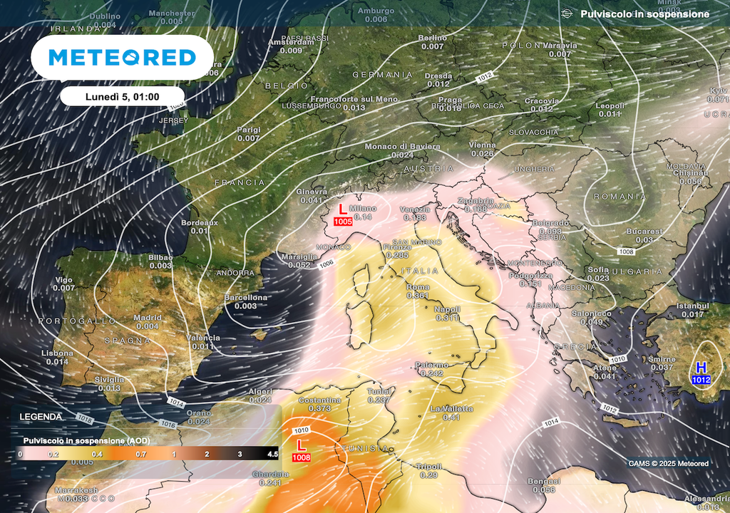 Due correnti a getto di diversa matrice condizioneranno la circolazione, dapprima quella subtropicale, accompagnata da un massiccio trasporto di pulviscolo desertico. Sulle Alpi poi si avvicina la corrente a getto polare, benché non irromperà in pieno, porterà comunque aria fredda che andrà ad alimentare una ciclogenesi sul centro nord Italia ad inizio settimana da cui seguirà maltempo col lato fresco della primavera.