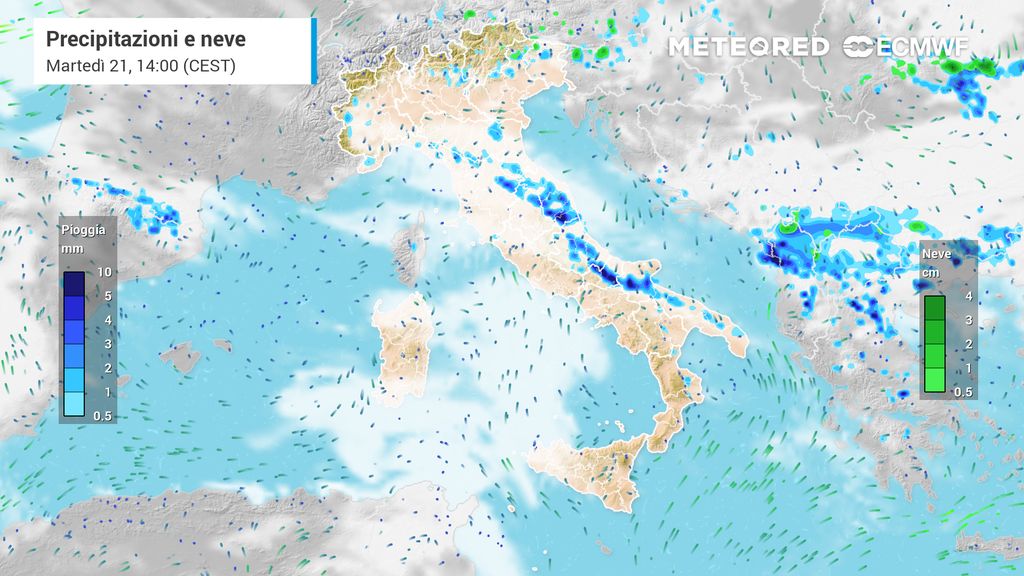 Martedì 21 aprile assisteremo a un peggioramento più marcato, con aumento della probabilità di piogge a carattere temporalesco, specie sul versante adriatico e sulle aree appenniniche interne, da nord a sud.