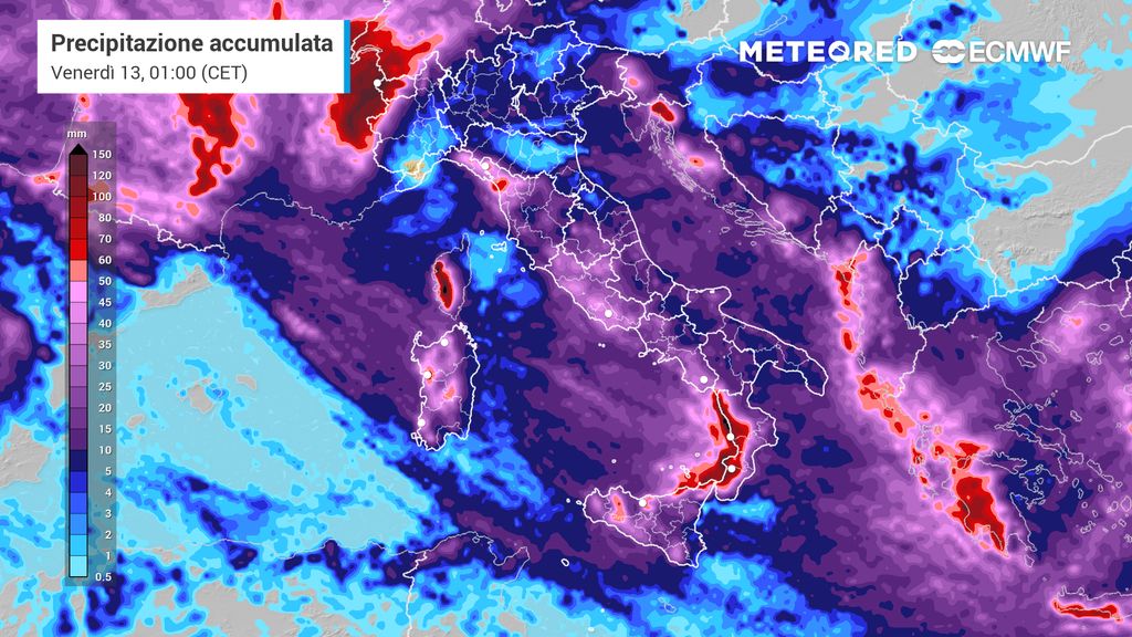 Anche stavolta, come nelle precedenti fasi di maltempo, ci aspettiamo fenomeni più intensi e abbondanti soprattutto sulle regioni tirreniche, dove non mancheranno anche rovesci e temporali.