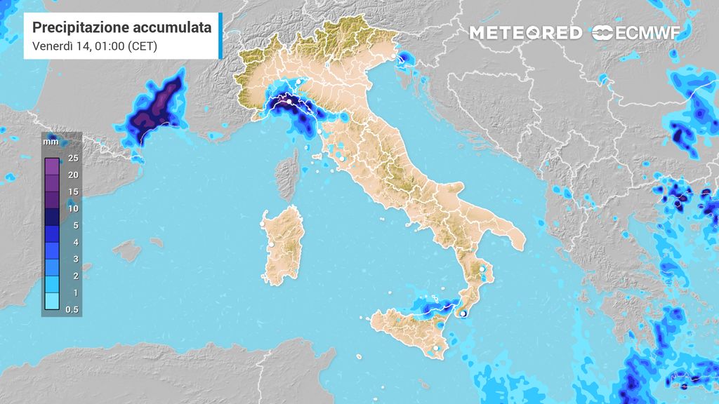 Quindi a partire dalla giornata di venerdì nubi irregolari inizieranno ad estendersi verso il centro e il sud Italia, ancora però senza precipitazioni in queste regioni.