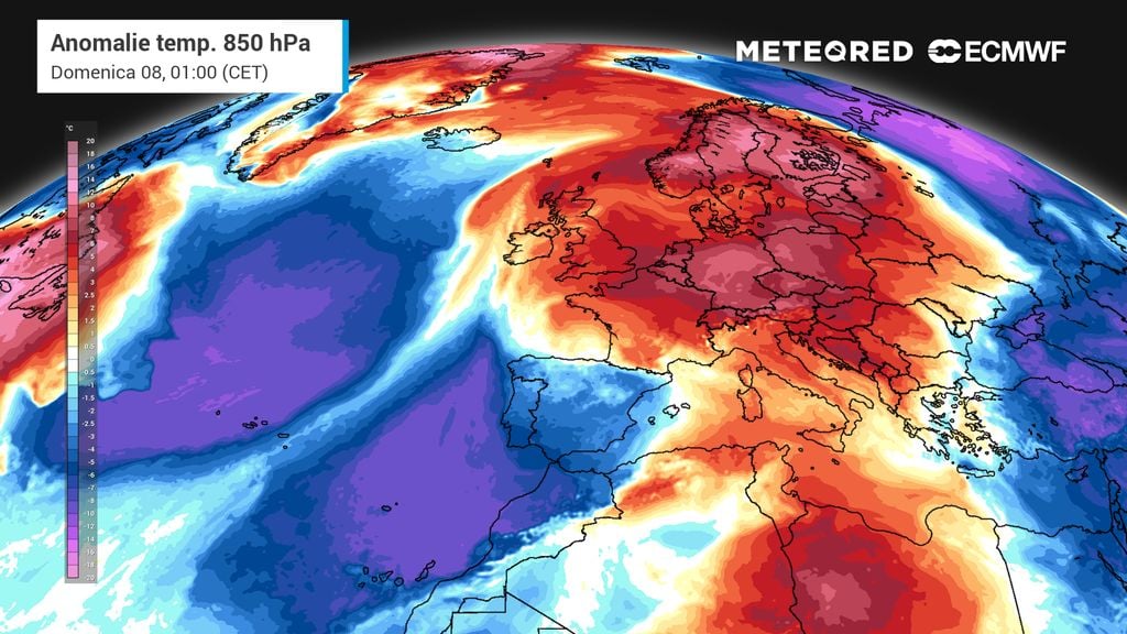 Al Sud e sulle Isole Maggiori, l'anomalia sarà leggermente più contenuta, attestandosi intorno ai +2°C, ma con punte di caldo localmente intense sulle aree interne della Sicilia e della Sardegna.