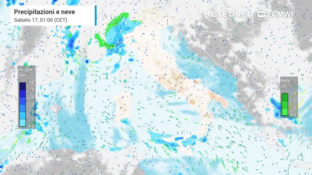 Con un ciclone in azione, contano tanto le linee di convergenza e i settori più colpiti dai flussi umidi: spesso finiscono in prima linea Isole maggiori e versanti tirrenici, ma l’asse delle precipitazioni può ruotare velocemente seguendo lo spostamento del minimo.