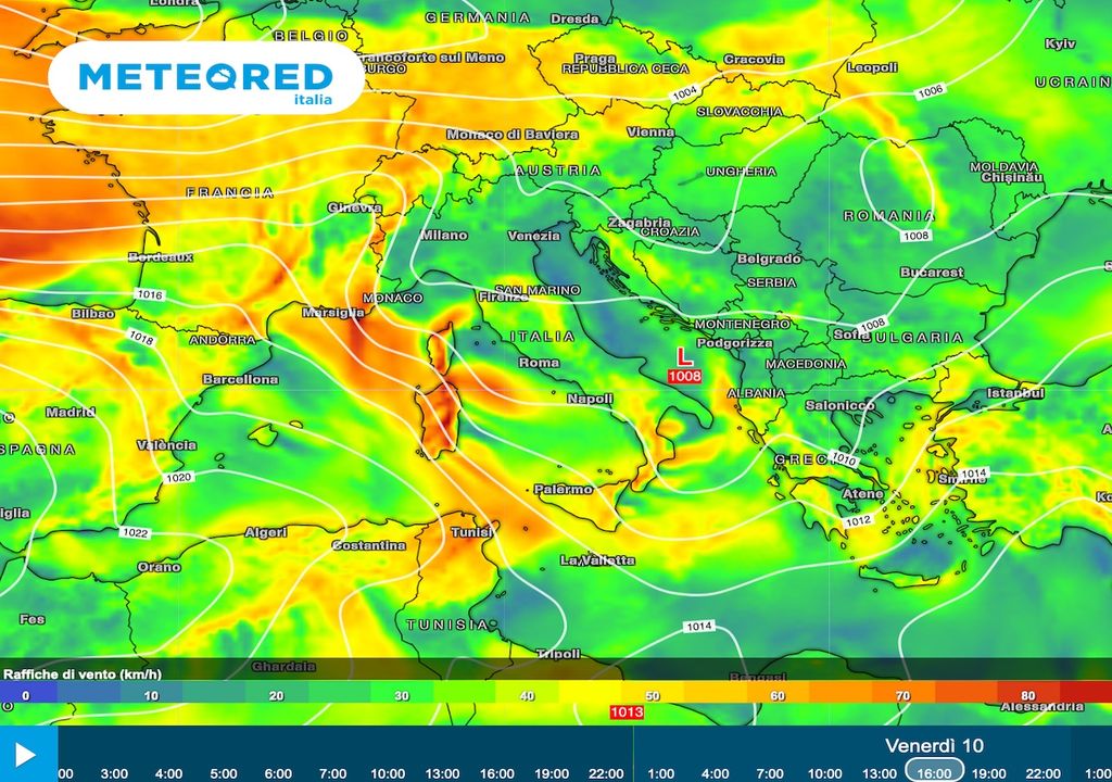Venerdì tempo sereno variabile al nord, ampi spazi di sole con cielo solcato da nubi alte e scie di condensazione. Più nuvoloso sulla Liguria e sulla dorsale Appenninica, con qualche leggera pioggia. Abbastanza soleggiato al centro, con nuvolosità maggiore sulla Toscana. Al sud altrettanto si alternano nubi e sole, qualche addensamento e pioggia locale possibile in Calabria.
