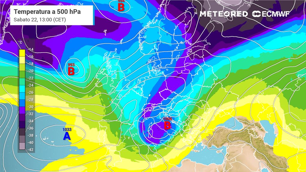 L’aria molto fredda, già avvertita al Nord, entro domenica dilagherà sul Paese, determinando un calo termico su tutta Italia con le temperature massime anche di 6/8°C sotto la media stagionale.