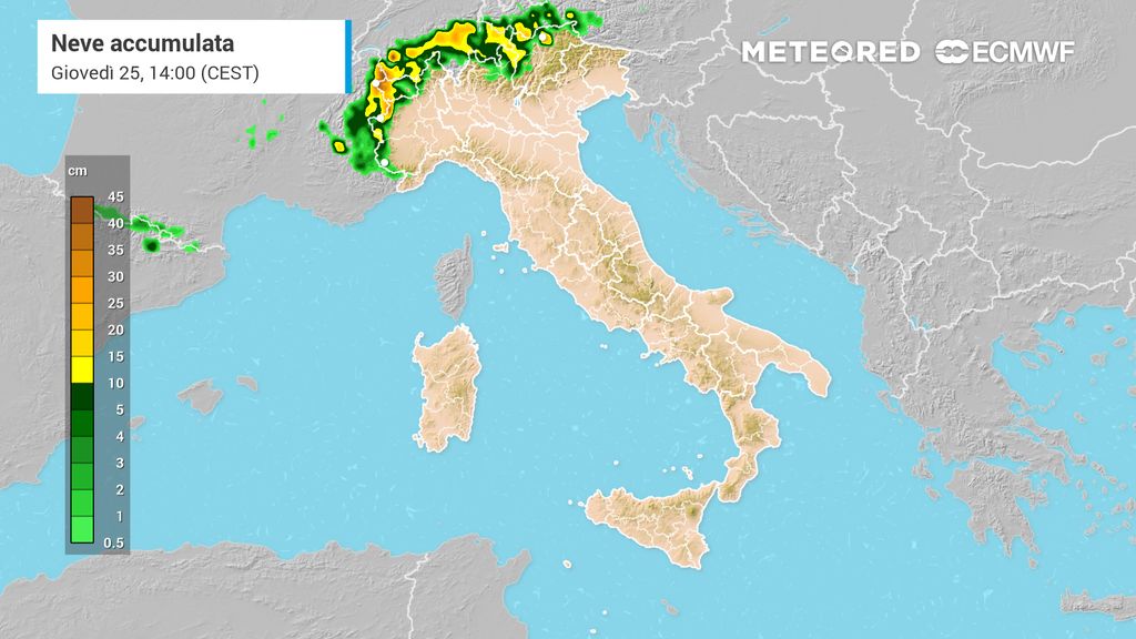 Giovedì la neve farà ritorno dapprima a quote più elevate, oltre i 2000-2400 m. I nostri modelli mostrano il ritorno delle precipitazioni nevose nelle aree più alte, e più abbondanti nelle aree alpine di confine, più settentrionali. Con il passare delle ore la quota neve scenderà, anche sotto i 2000 metri.