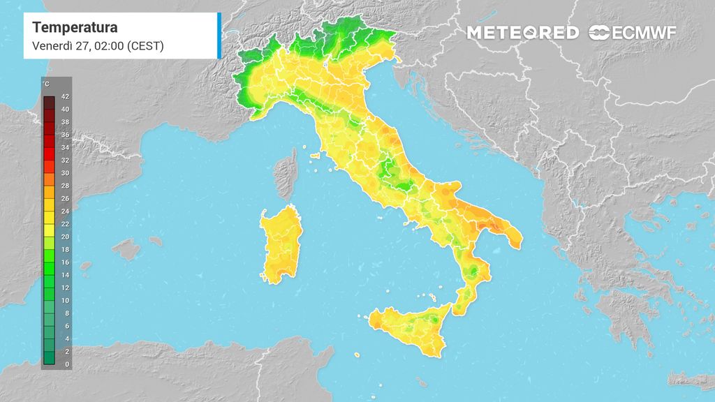 Nelle pianure del Nord l’afa sarà insopportabile e si farà sentire soprattutto durante la notte, quando le temperature si abbasseranno leggermente, ma l’umidità dell’aria in molte città supererà l’80% con una percezione di calore accentuata ulteriormente: Roma sarà la città più calda, sia sabato 28 che domenica 29 giugno si prevedono temperature massime intorno ai 40 °C, mentre nell’entroterra laziale non sono escluse punte localmente anche superiori, farà molto caldo anche in Toscana e Umbria con 38 °C previsti a Firenze e 37 °C a Terni.