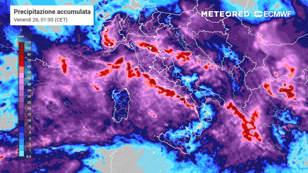 Per venerdì quindi avremo ancora nubi estese con precipitazioni sparse localizzate perlopiù al centro-sud. Da sabato schiarite sempre più ampie si estenderanno anche alle regioni centrali dove contestualmente si esauriranno i fenomeni. Sabato quindi le precipitazioni interesseranno quasi esclusivamente le regioni meridionali e le due isole maggiori, arretrando progressivamente anche in queste zone.