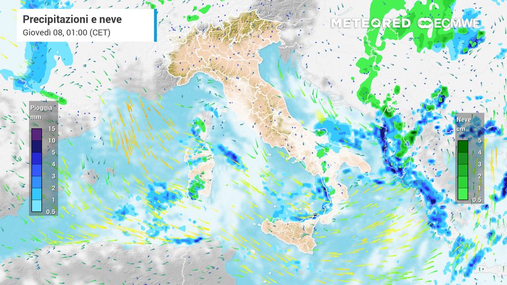 Nel corso del pomeriggio i fenomeni tenderanno ad attenuarsi e a concentrarsi maggiormente sulle regioni centrali, ma dalla sera gli effetti della circolazione ciclonica inizieranno a farsi sentire in modo più deciso tra Sardegna e Lazio.