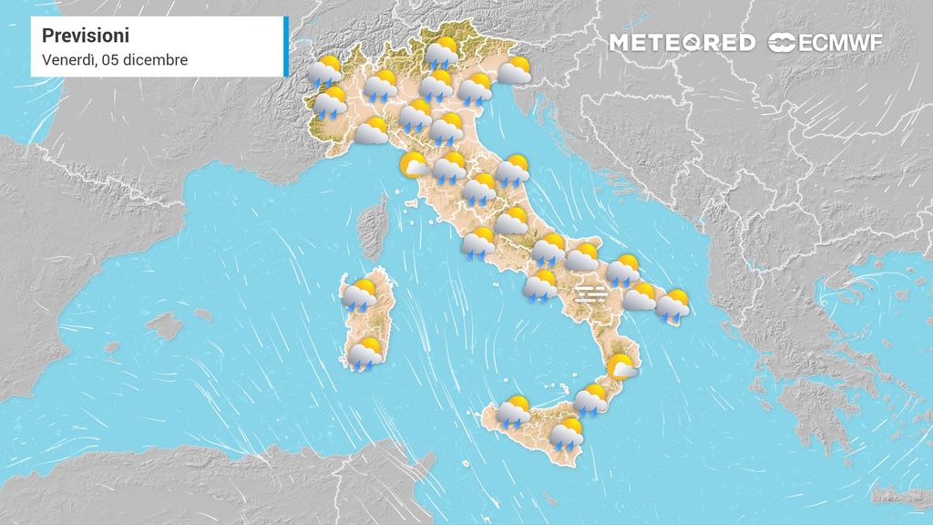 Uno scenario simile si ripresenterà domani, venerdì 5 dicembre, quando un nuovo impulso instabile sfiorerà la Penisola.