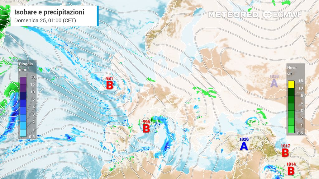 Anche se il centro della depressione non passerà sul nostro territorio, i suoi effetti secondari si faranno sentire in Italia sotto forma di pioggia e neve. Anche altre aree d'Europa saranno interessate, ad esempio la Spagna, dove sono attesi venti intensi e onde di grandi dimensioni.