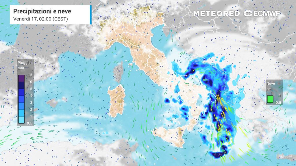 Le precipitazioni potranno spingersi anche verso l’interno, coinvolgendo Campania, Basilicata e, a tratti, anche il medio Adriatico.