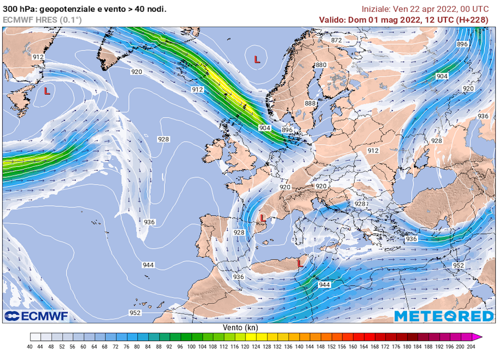 Il primo maggio potrebbe vedere una perturbazione avvicinarsi al nord e un’altra al sud, con qualche pioggia. Presto per i dettagli, ne riparleremo, ora vediamo a grandi linee la prima decade del mese.