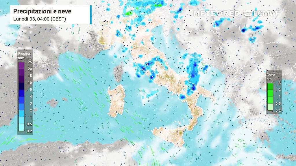Più nel dettaglio oggi il tempo sarà più stabile sull’area tirrenica e sulle pianure piemontesi, mentre sono in atto ancora piogge sparse o rovesci e locali temporali tra Valle d’Aosta e settori alpini del Piemonte, Liguria, Lombardia settentrionale ed orientale e Triveneto, ma anche Emilia-Romagna, Toscana, Umbria, Marche, zone interne del Lazio, Abruzzo, Molise e Puglia centro-settentrionale.