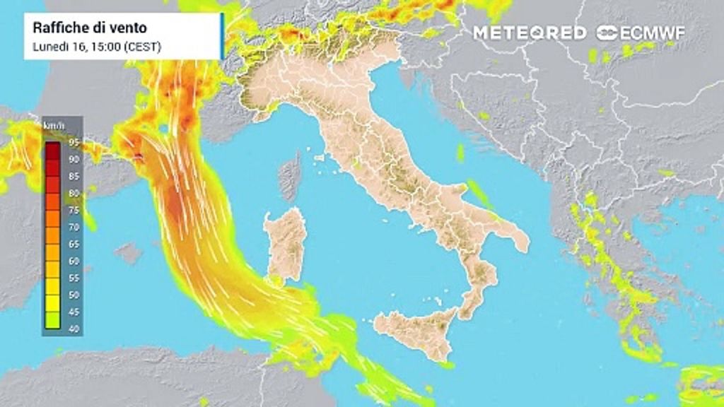 Da segnalare anche le raffiche di vento, forti, da nord, sui settori alpini di Lombardia e Alto Adige, e di Foehn nelle valli. Mari ancora complessivamente molto mossi.