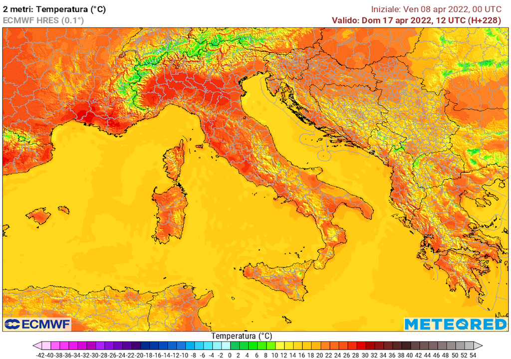 Ad inizio settimana poi ci troveremo con la nostra penisola nella parte centrale dell’onda, con un promontorio in quota ma lambiti a ovest dall’onda calda e umida e a est dall’onda fredda.