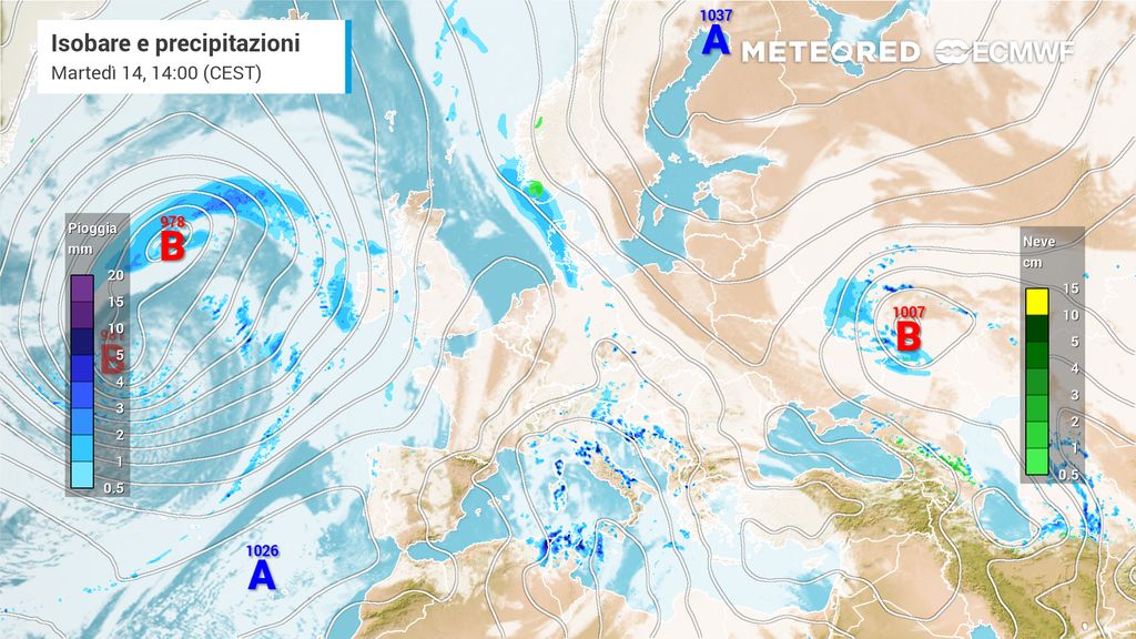 Il ciclone appare minaccioso ma in realtà i contrasti termici non sono molto accentuati per cui le piogge, pur consistenti, non sembrano raggiungere secondo ECMWF livelli da evento estremo.