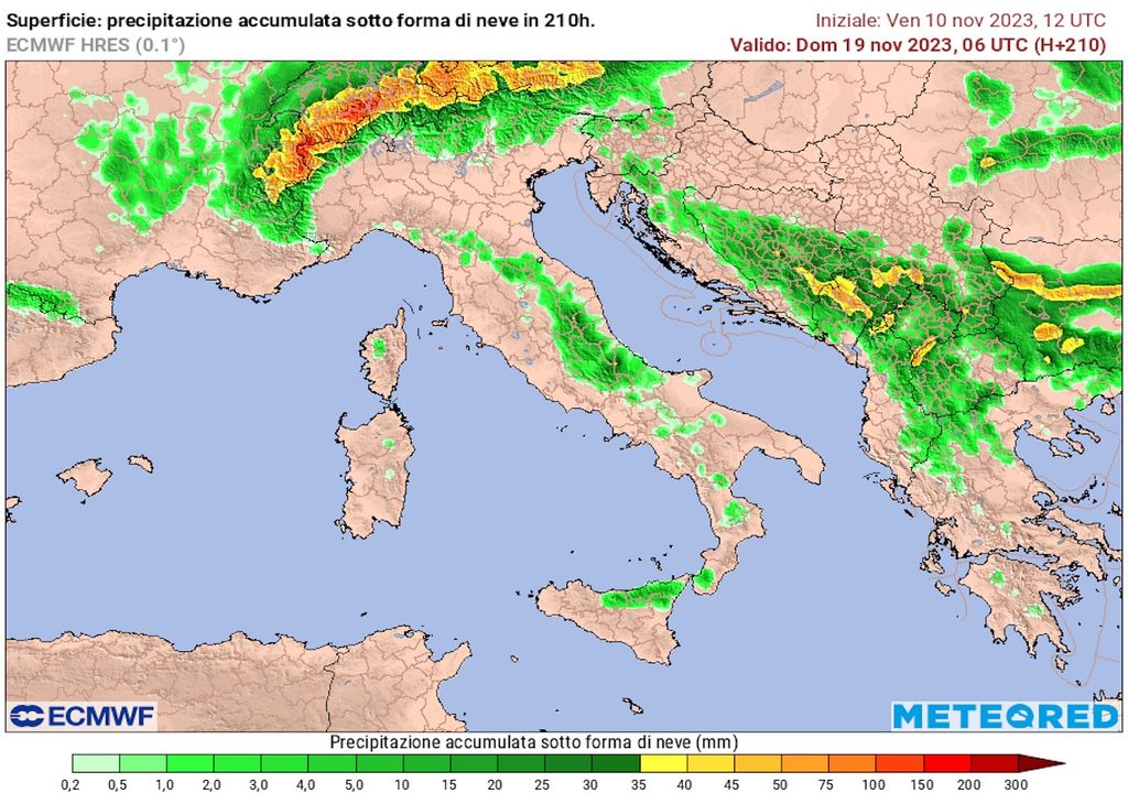Al momento la citata perturbazione non sembra tale da portare neve in pianura. Anche le tendenze substagionali non appaiono indicare condizioni favorevoli a nevicate precoci in pianura, mentre pur in un quadro di temperature nella media o anche sopra, potrebbero esserci altre occasioni di neve per le Alpi e in parte per l’Appennino verso fine mese.