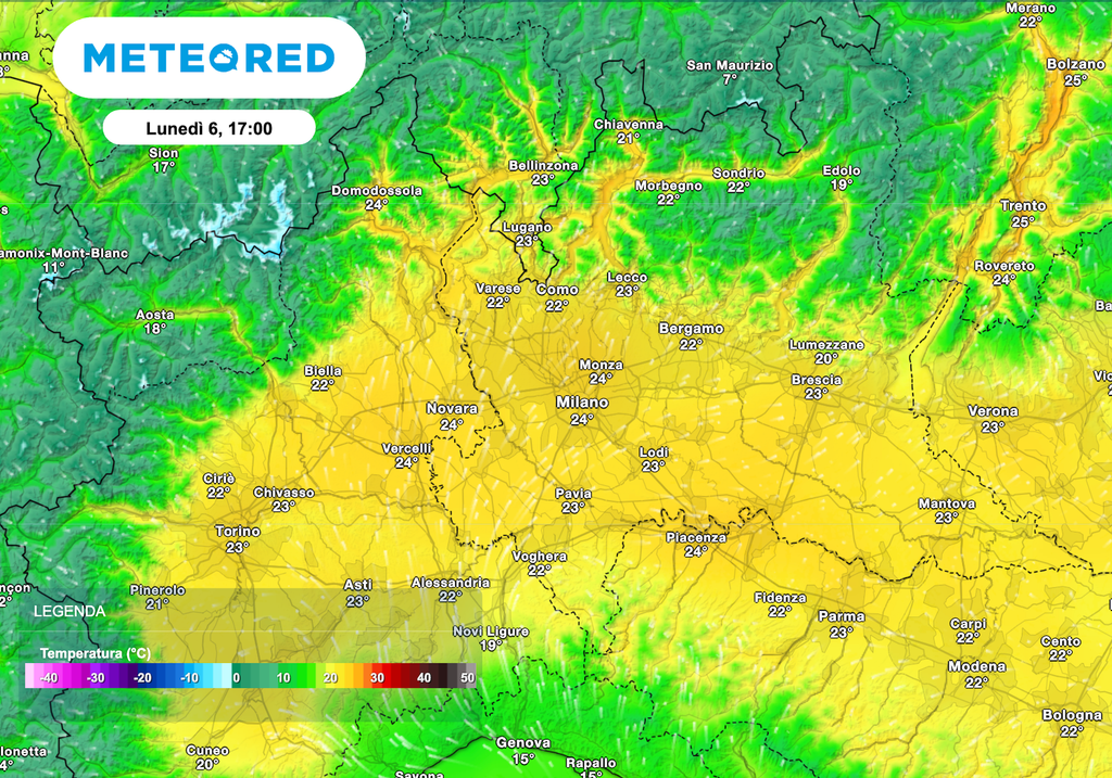 Tra venerdì 3 aprile e il weekend pasquale si assisterà a un progressivo rialzo termico. A Milano si toccheranno i 20°C già venerdì, mentre tra Pasqua e Pasquetta si potranno superare facilmente i 22-23°C, con punte anche più alte fino a sfiorare i 25°C.