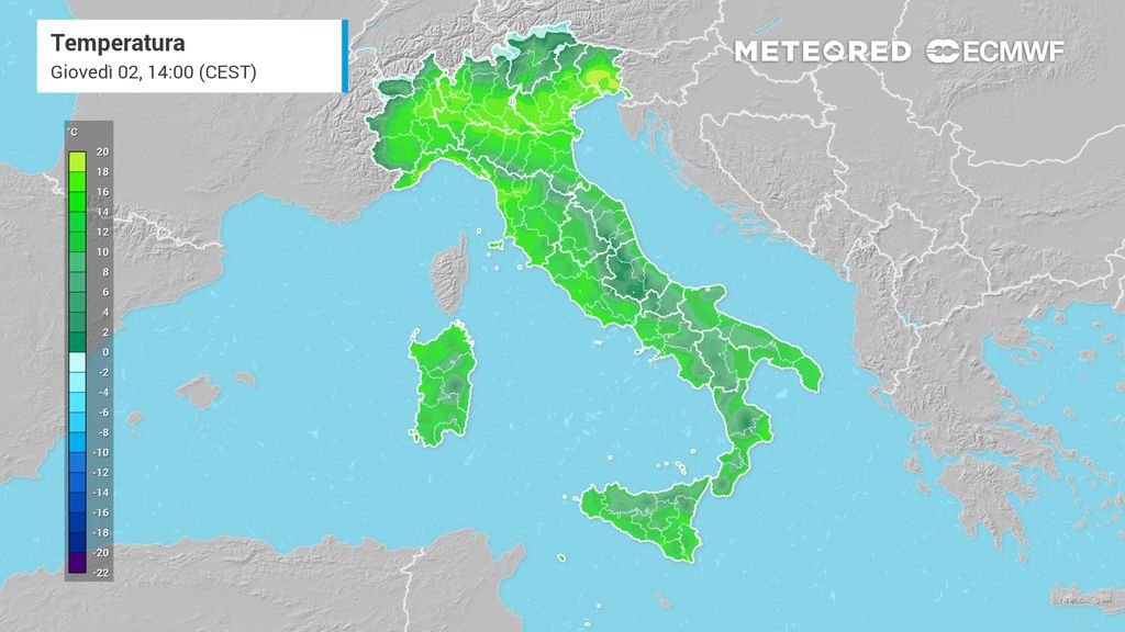 Le massime inizieranno già a salire, raggiungendo i 18°C a Milano, in un contesto limpido e tipicamente primaverile.