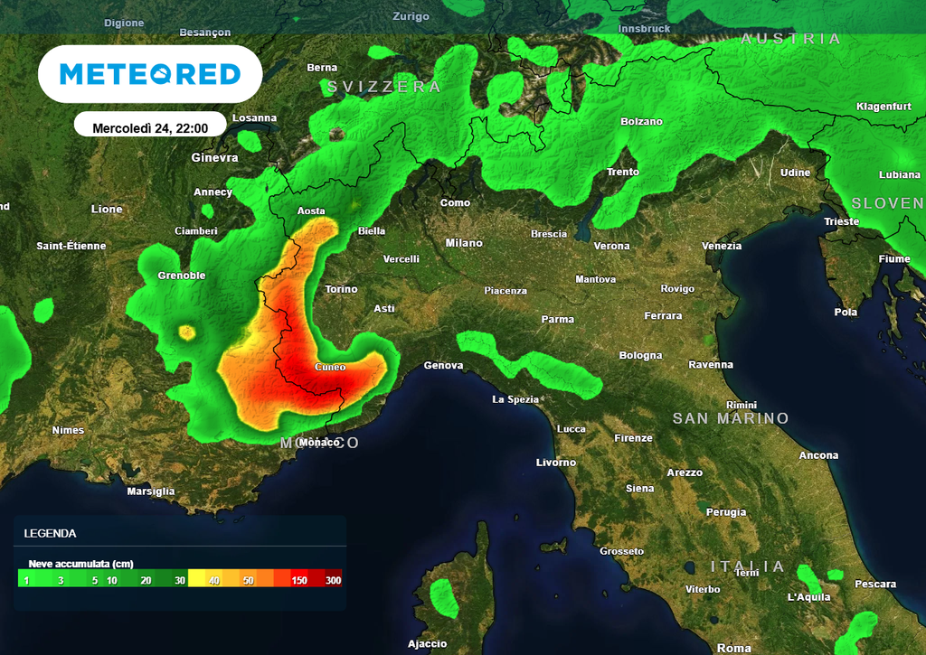 In questo contesto, le principali località turistiche montane del Piemonte e della Liguria alpina possono attendersi nevicate frequenti tra domenica sera e martedì, con accumuli che oltre i 1500-1800 m potranno raggiungere alcune decine di centimetri di neve fresca.