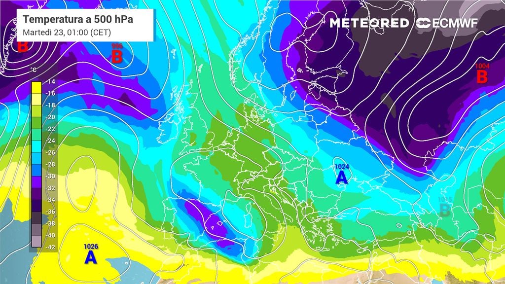 Le proiezioni di tendenza settimanali indicano, per il periodo 22-28 dicembre, un Mediterraneo Centrale spesso interessato da minimi depressionari, con temperature mediamente non estreme, ma sufficientemente basse da garantire nevicate consistenti in montagna.