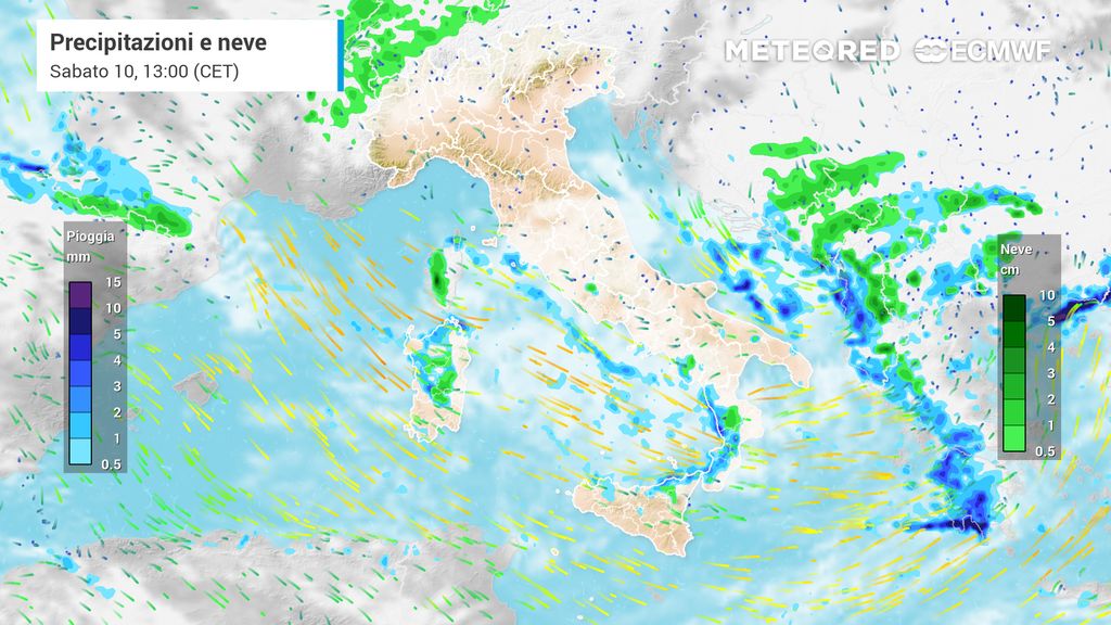 Sabato sarà una giornata caratterizzata da piogge e rovesci diffusi, con neve in montagna e il progressivo abbassamento della quota neve fino a livelli collinari lungo l’Appennino centrale e meridionale.