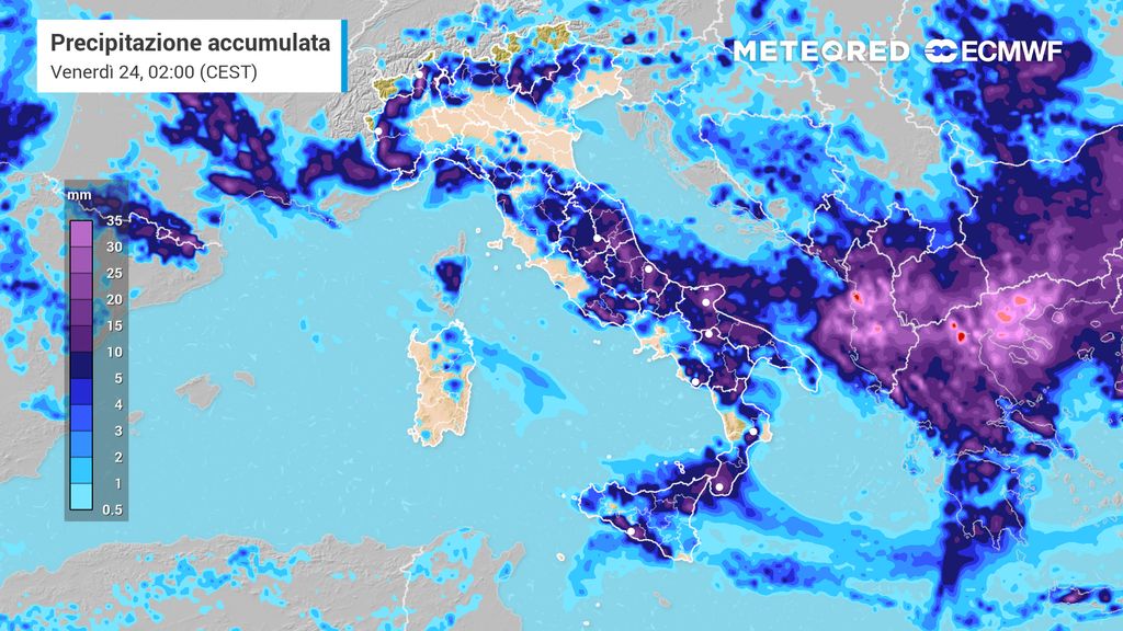 Ovviamente, nel ridiscendere lo stivale la perturbazione andrà a colpire dapprima le regioni settentrionali, poi quelle centrali e infine quelle meridionali.