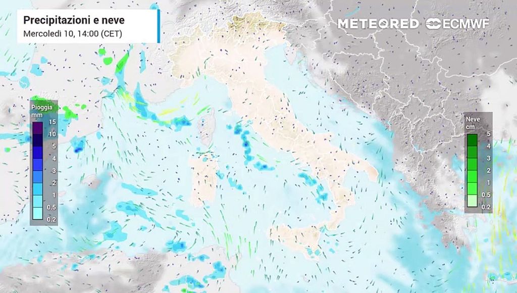 È prevista anche la neve in Appennino al di sopra dei 1200 metri di quota sul settore centrale, 1400 metri al Sud.