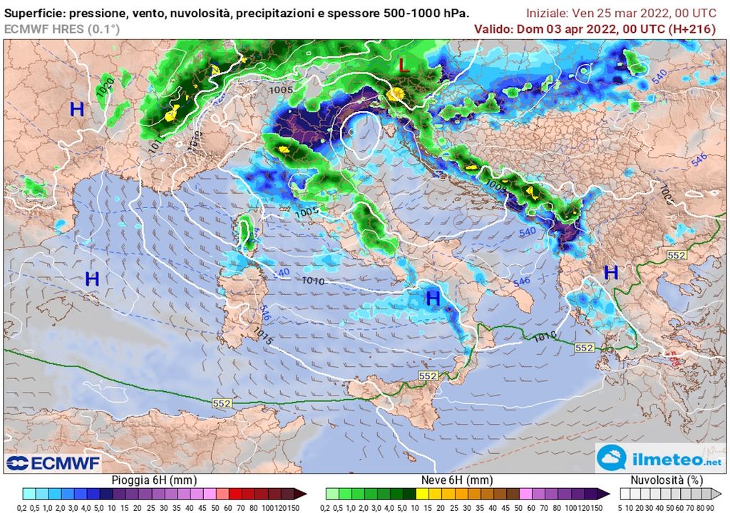 Lunedì 28 e martedì 29 poco da dire e da segnalare, al nord il cielo vedrà nubi in aumento ma ancora assenza di precipitazioni. Al centro sud notiamo qualche piovasco lunedì nelle zone interne Appenniniche, miglioramento in Sicilia e Sardegna. Ci concentriamo dunque su mercoledì 30 e giovedì 31, giornate in cui dovrebbe finalmente arrivare una perturbazione atlantica al centro nord. Mercoledì torna la neve sulle Alpi occidentali e arrivano piogge e rovesci fra Liguria, Toscana e nordovest, neve a quote medio alte sulle Alpi, piogge irregolari al nordest. Anche al centro piogge in arrivo.
