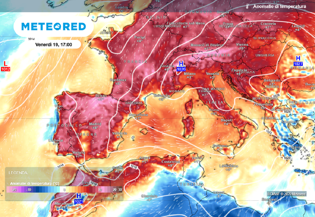 La fascia subtropicale alta porterà temperature torride in alcune zone della Spagna, con massime fino a 40 °C. Anche in Italia la settimana che precede l'equinozio d'autunno sarà molto calda, specie al centro-sud.