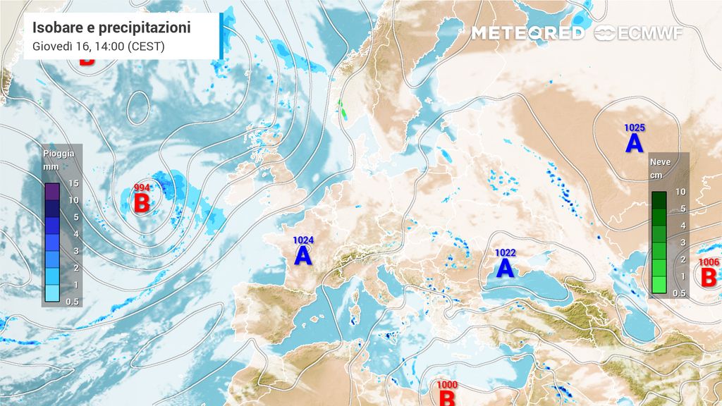 Come detto attualmente sull’Italia è in azione una depressione mediterranea, denominata Ulla dal Dipartimento di Meteorologia dell’Università di Berlino. Nelle prossime ore Ulla si sposterà a sudest, lasciando aumentare la pressione sull’Italia.