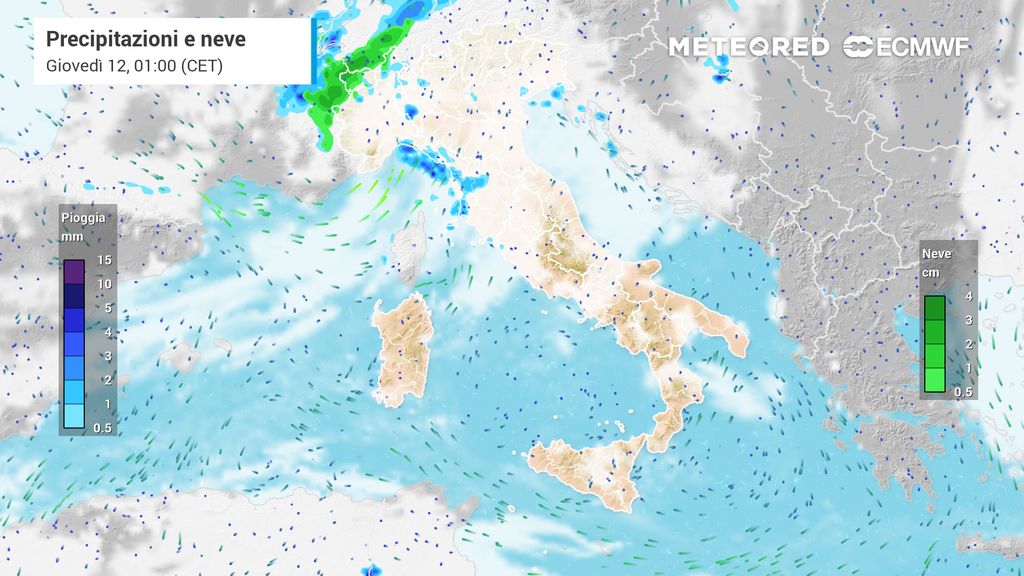 Durante la giornata di giovedì 12 piogge, rovesci e temporali sono attesi su quasi tutta Italia, con l'eccezione di alcune aree del Centro e del Sud.