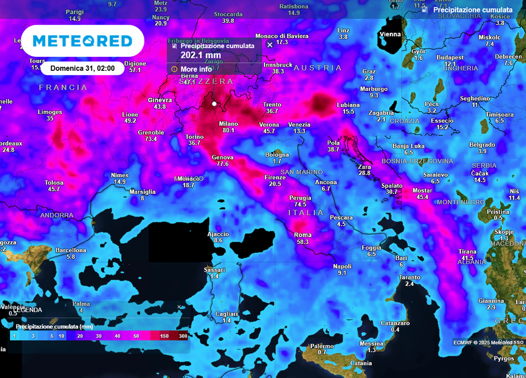 Torneremo su questa previsione, perché non è da escludere che si rovescino sul Lazio e sull'area di Roma più di 100 mm in poco più di 24 ore. Sono quantitativi davvero considerevoli, che quando cadono al suolo in poco tempo, e peraltro dopo i mesi estivi, possono generare criticità.