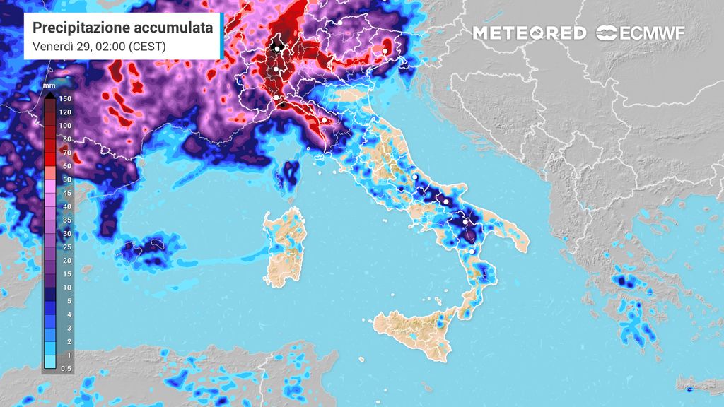 Poi il maltempo si intensificherà nel corso della giornata di venerdì 29, colpendo anche le regioni del centro e del sud, con maggior forza sul versante tirrenico.