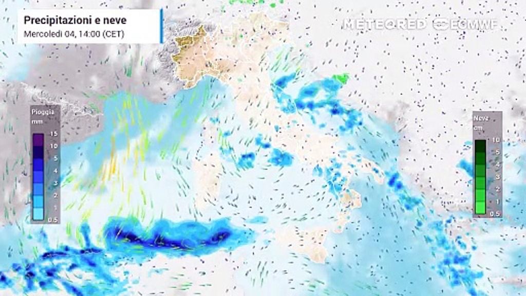 Le previsioni meteo per i prossimi giorni indicano forte maltempo al Sud e nel weekend aria gelida di origine polare entrerà dalla valle del Rodano andando ad alimentare un ciclone a carattere freddo sull'Italia.