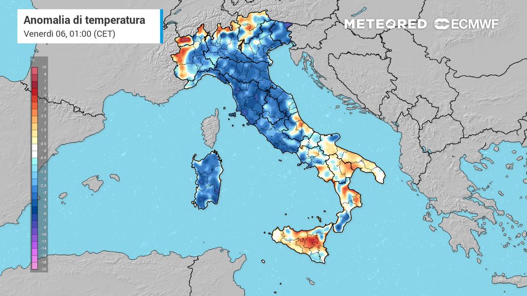 Tendenza nuova settimana: temperature sotto la media, gelo al Nord