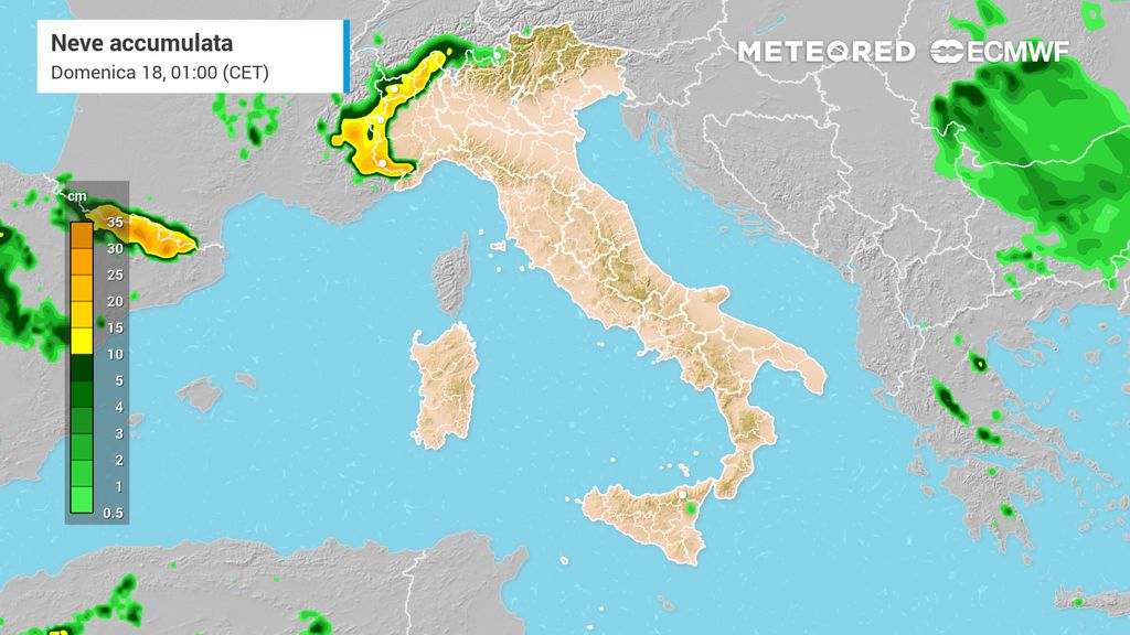 Nevicate significative soprattutto sulle Alpi occidentali. Tra la sera di venerdì e la prima parte di sabato si concentrerebbero le fasi più produttive, con accumuli spesso tra 30 e 50 cm oltre i 1500 m tra Piemonte e alta Lombardia occidentale; localmente non si escludono punte maggiori sui settori più esposti.