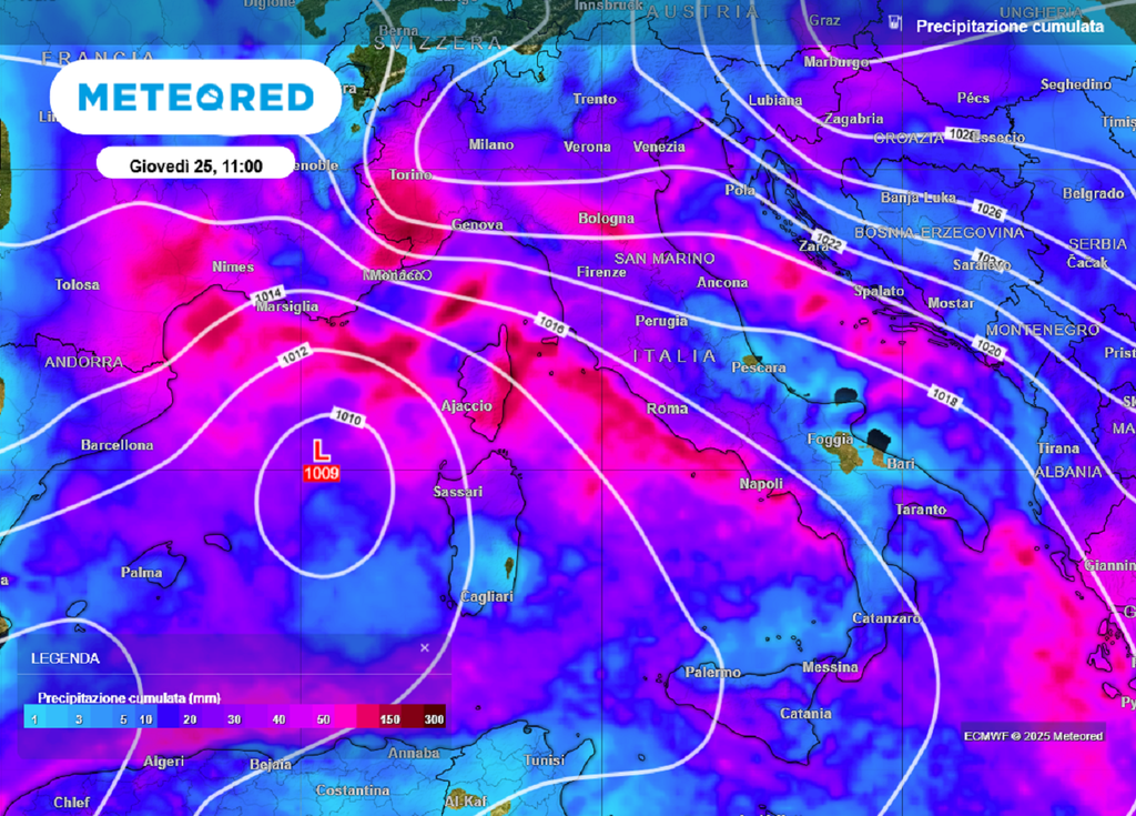 Già nelle prime giornate della settimana, un vortice mediterraneo inizierà a influenzare il tempo sull’Italia, favorendo l’afflusso di correnti umide e instabili. Le prime regioni a risentirne saranno quelle settentrionali e le aree tirreniche, dove le precipitazioni tenderanno a diventare più frequenti e insistenti.