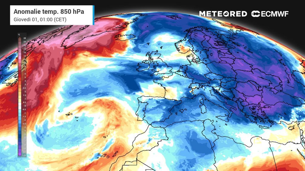 La situazione atmosferica sull'Europa sta subendo una trasformazione radicale proprio a fine 2025. Un robusto campo di alta pressione, posizionato tra il Nord Atlantico e il Regno Unito, sta favorendo la discesa di una massa d'aria fredda di origine artico-continentale verso il Mediterraneo. Questa irruzione fredda interesserà in parte la nostra penisola con un brusco calo termico.